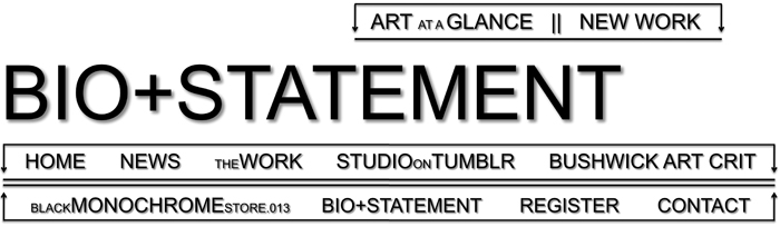 Christopher Stout has accomplished 73 gallery performance/exhibitions, with 9 solos and 10 completed bodies of work, including Portraits of Narcissism, Ecdysis, Sacred Impiety, Unbridled!, Coma State (The Long Unpleasant Dream…), I am too ___ to be the Demographic, Vigil, A Day with (OUT) Art, New Work (Momentum), Power Symbols (Black White Gold Gray + Red), and Linear Anagram. He will debut a NEW series of work during this year's Arts in Bushwick hosted Bushwick Open Studios weekend. In addition, Christopher holds collectors and work in 23 of the continental 48 states.